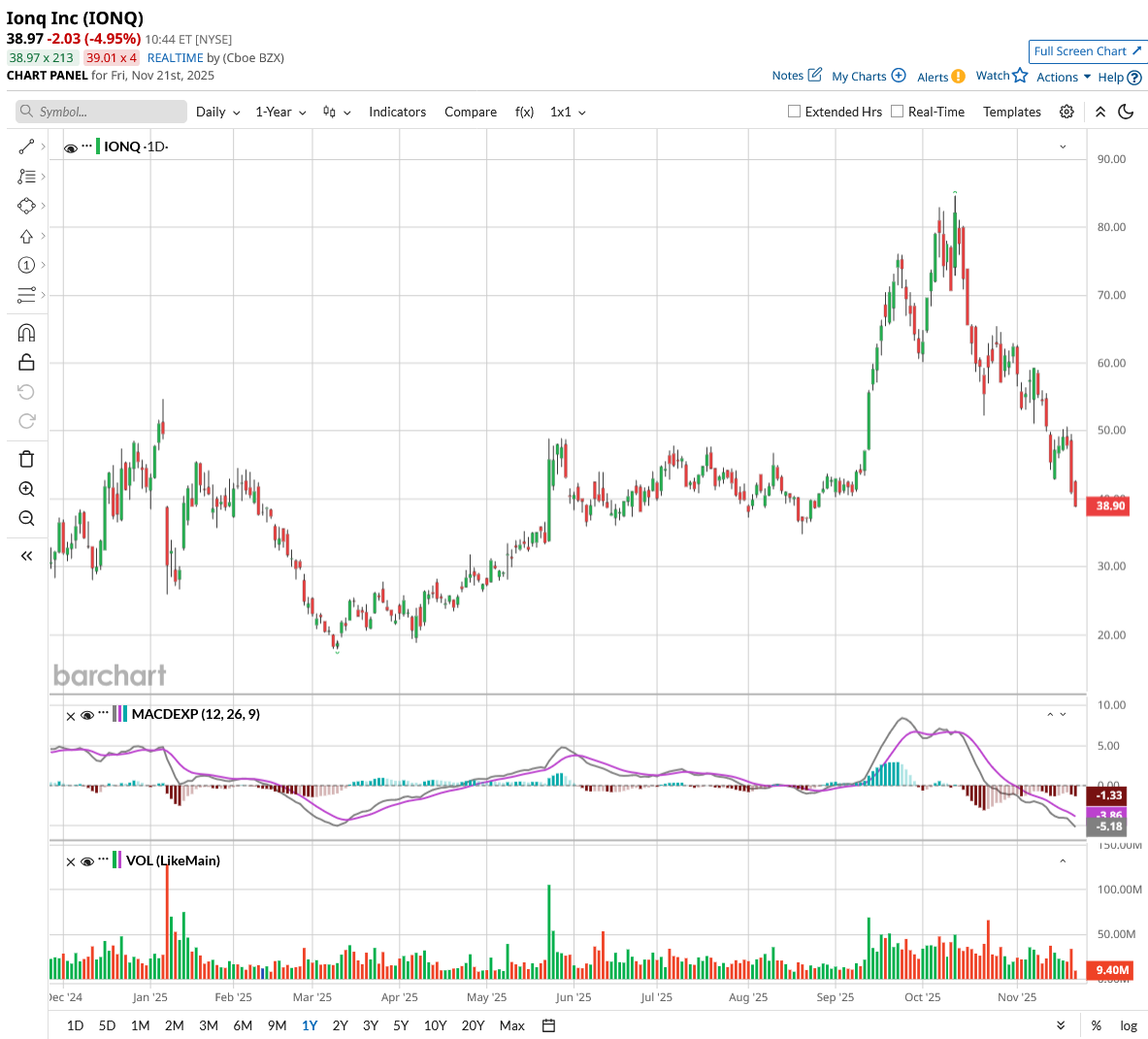 The investment bank set a December 2026 price target of $47 while maintaining a “Neutral” rating, citing valuation concerns even as it praised the company's positioning. Valued at a market cap of $14.2 billion, IONQ stock trades at about $39 and is up 20% in the past 52 weeks but down 6% year-to-date (YTD).