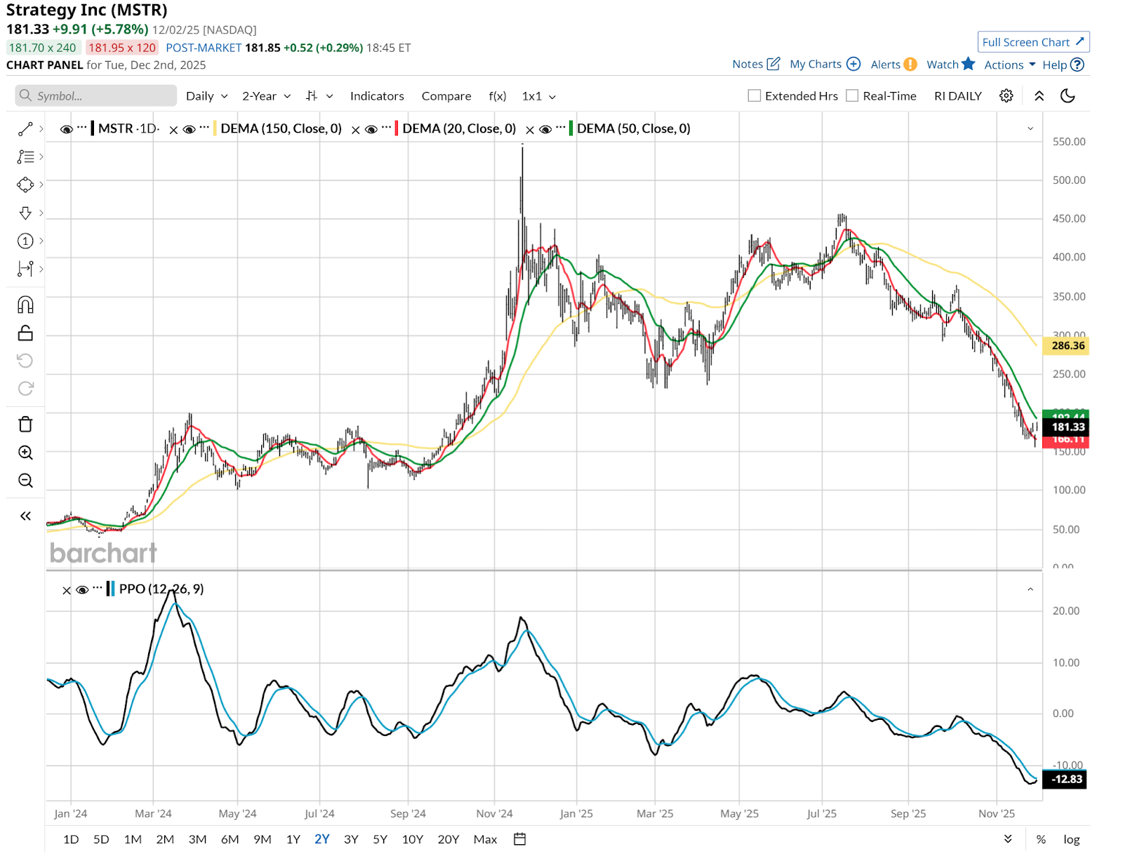 And finally, MSTR. My observation here is that if I’m going to try to play a rally in a stock that has eroded so much value, I’d want a lot more upside than is afforded here. With a much bigger out of pocket net cost for the options, I could pursue that. But that’s not my style.