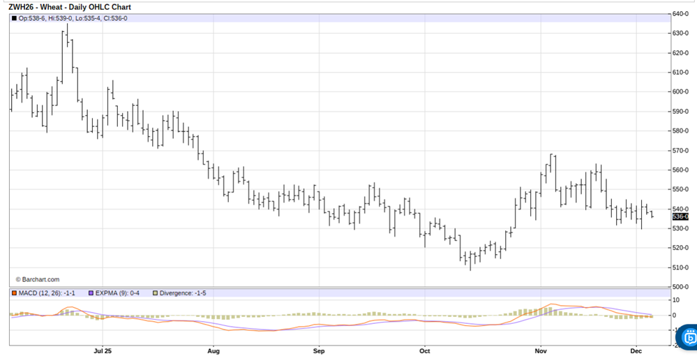March soft red winter wheat (ZWH26) futures present a selling opportunity on more price weakness.