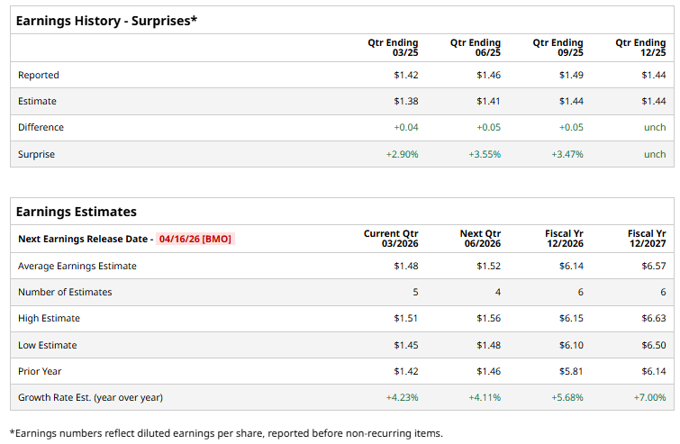 Looking ahead, analysts anticipate the company’s EPS to rise 5.7% year over year to $6.14 in the current year. For FY2027, its EPS is expected to climb 7% annually to $6.57.